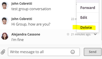 Hi, it’s possible but maybe your school has turned it off/disabled it. Please reach out to your schools itslearning System Administrator, he/she just must tick off a box to under ‘Admin > Global settings > Features and security’ to make it possible to delete messages. Students and teachers can delete their own messages and report abusive messages. Teachers can also delete students messages in group conversations.