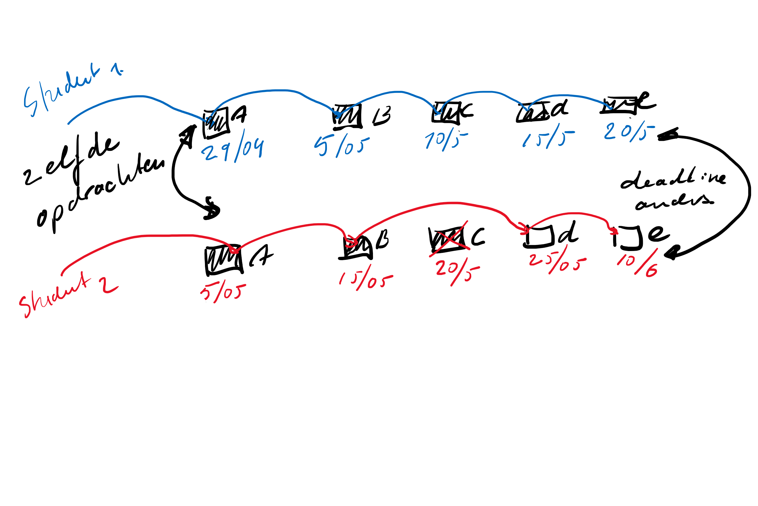 other option is for a teacher easier: an extra collum with a deadline, standard dealine is set with the assignment, deadline can be adjusted per student of group. (red square )