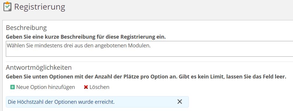 Bitte begrenzen Sie nicht die Anzahl der Optionen bei der Aktivität REGISTRIERUNG. Merged