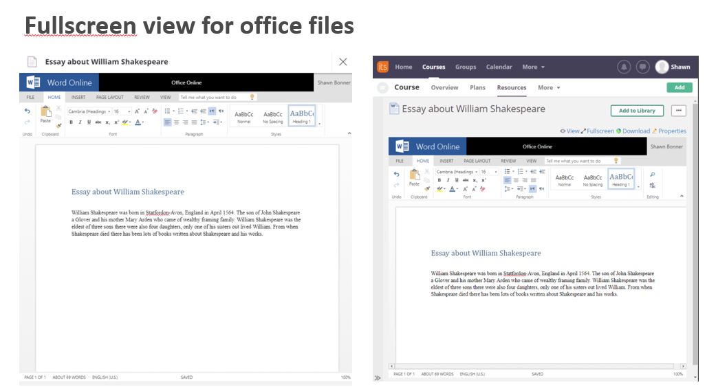 When adding an online Word task, the view on the site is very small. In order to see the whole content of the document one has to shrink the view into 50 %. Thus, with a small screen e.g on laptop, online word documents are impractical to use.
