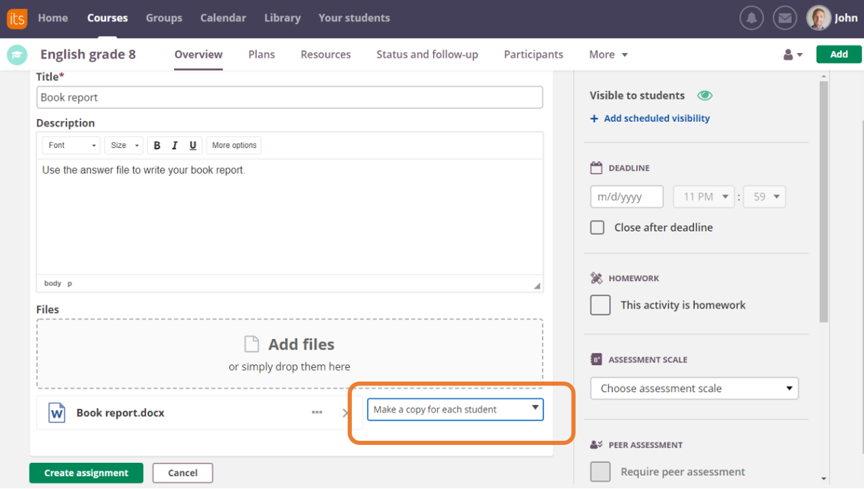 Hi, released for back to school this year. It’s now easy for teachers to make a separate copy of Office worksheets for all students in assignments. Teachers can Quick Add files from OneDrive and SharePoint/Teams (if the school uses O365). Students work on the Office documents directly in itslearning and teachers can e.g. grade assignments directly in itslearning with the All-in-One Grader.